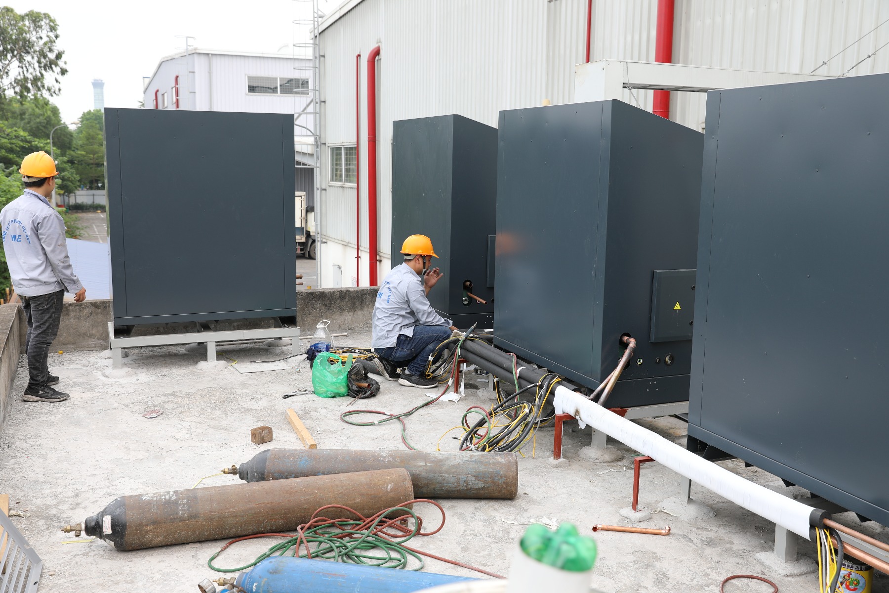 Nén nitơ thử kín hệ thống ống đồng.