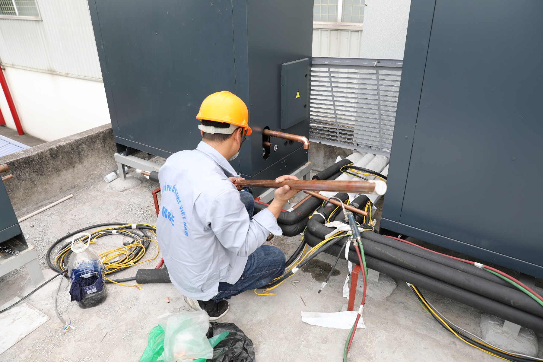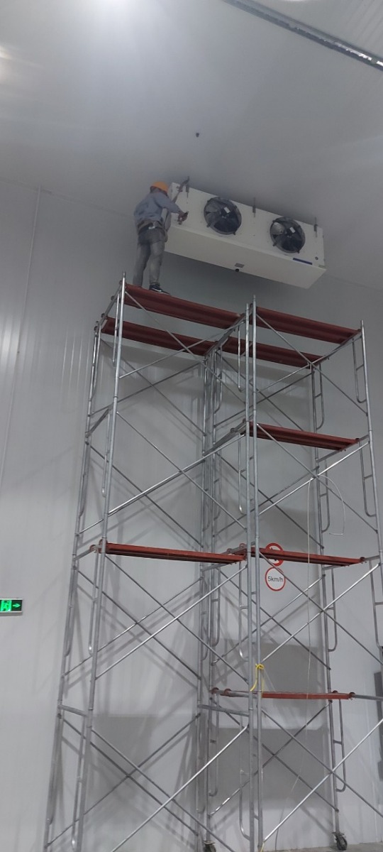 Thi công hệ thống ống đồng, ống nước, rèm nhựa ngăn lạnh, tủ điện, hệ thống điều khiển và kết nối máy nén và dàn lạnh.